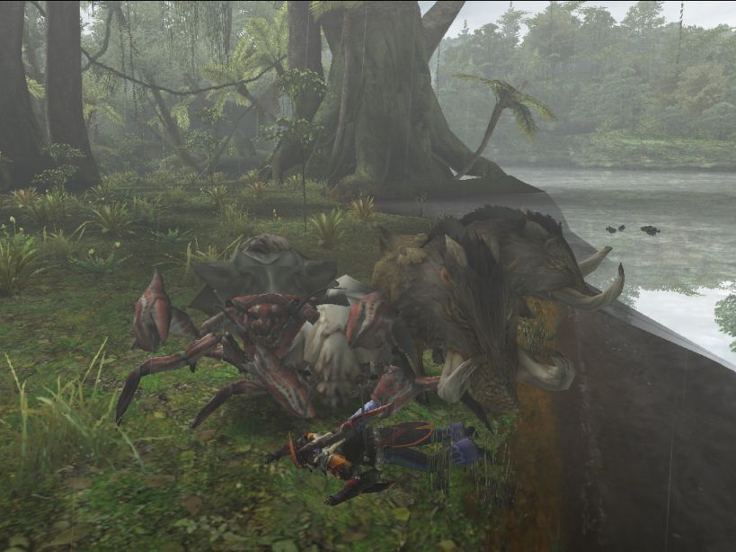 釣りポイントは森丘BC、地図納品クエは、あんまりカジキいないっぽいんで、51~のランポス4頭、薬草納品・・・のクエで釣ってます・・・けっこう釣れるなココ・・・。